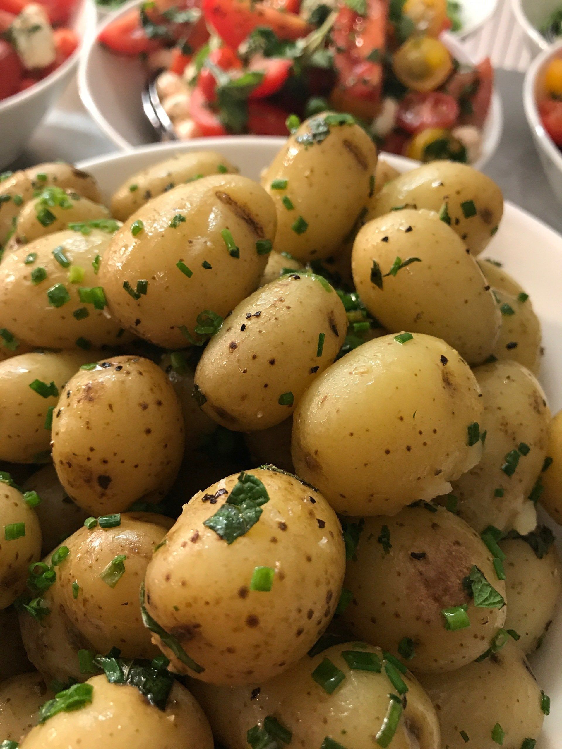 fresh orange and parsley. - American style potato salad - mustard mayo & dill.